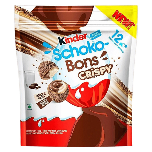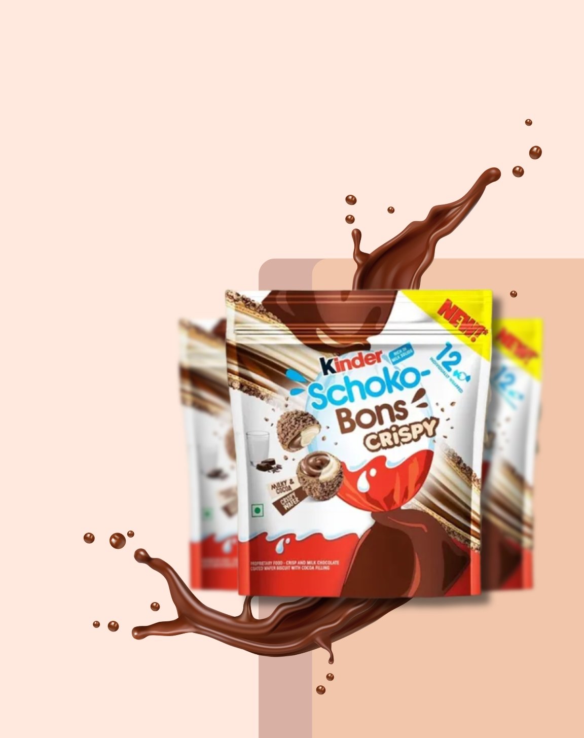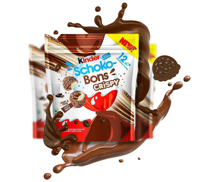 Genuss mit jedem Bissen! Entdecke SCHOKOBONS Crispy, die perfekte Mischung aus cremiger Kinder-Schokolade und knusprigen Cerealienstückchen. Jeder Bissen ist ein köstliches Abenteuer und ideal zum Teilen oder allein Genießen. Gönn dir einen lustigen, leckeren Snack, der Freude in jeden Moment bringt.